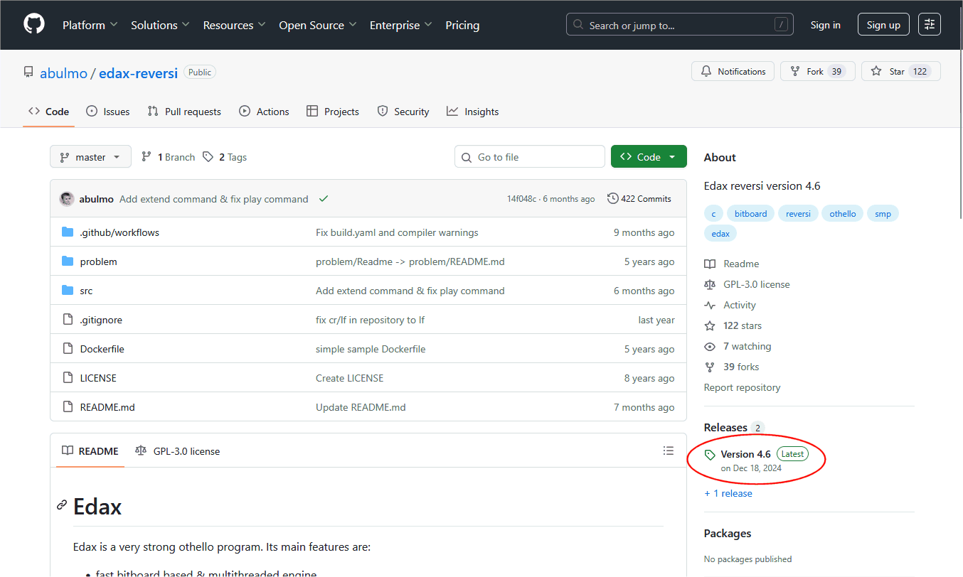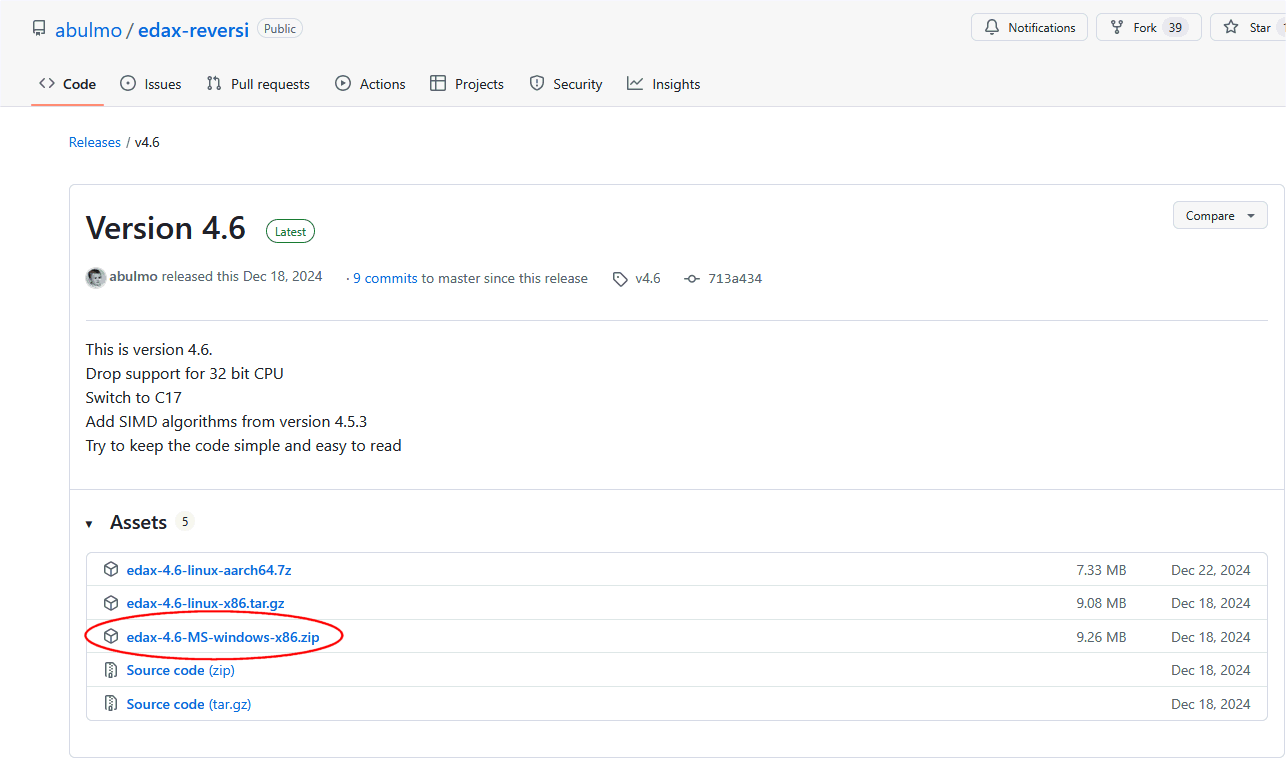 edaxを適当なフォルダの中に解凍します。