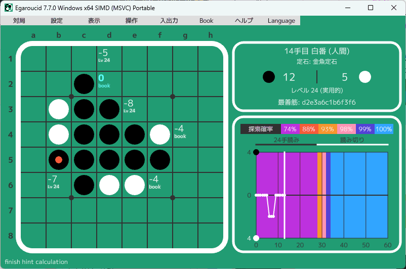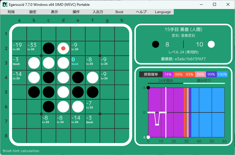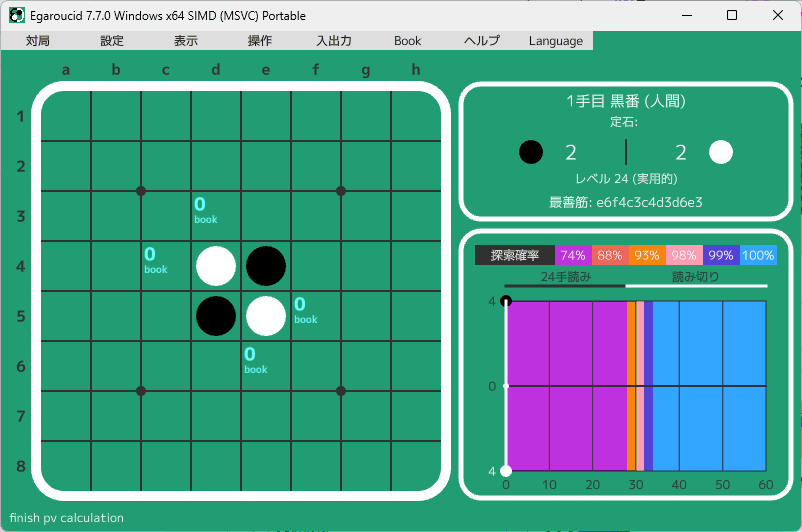 bookを見るソフトは色々ありますが、私は最近はEgaroucidで見ているので、Egaroucidを紹介します。