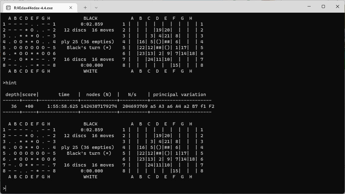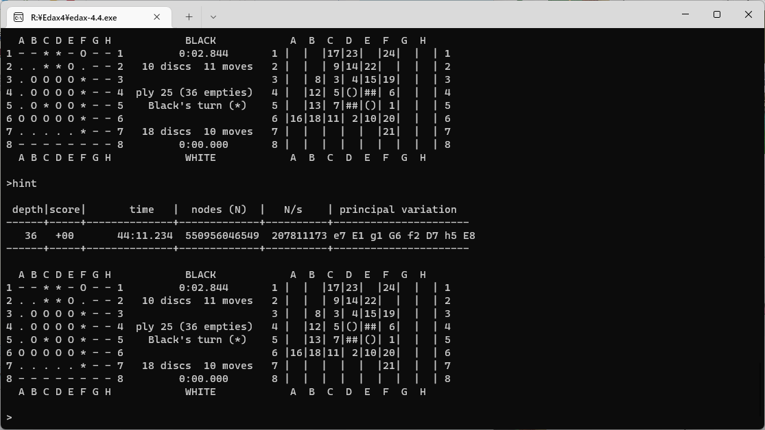 empties(空きマスの数)と、nodes(N)(edaxが読んだ局面の数っぽい数字)